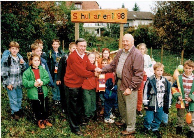 Im März 1999 wurde unterhalb der Turnhalle eine Streuobstwiese angelegt: hierfür wurden unter Anleitung und Finanzierung des OGV 30 Jungbäume gepflanzt. Heute finden dort gerne unsere Schnittkurse statt.